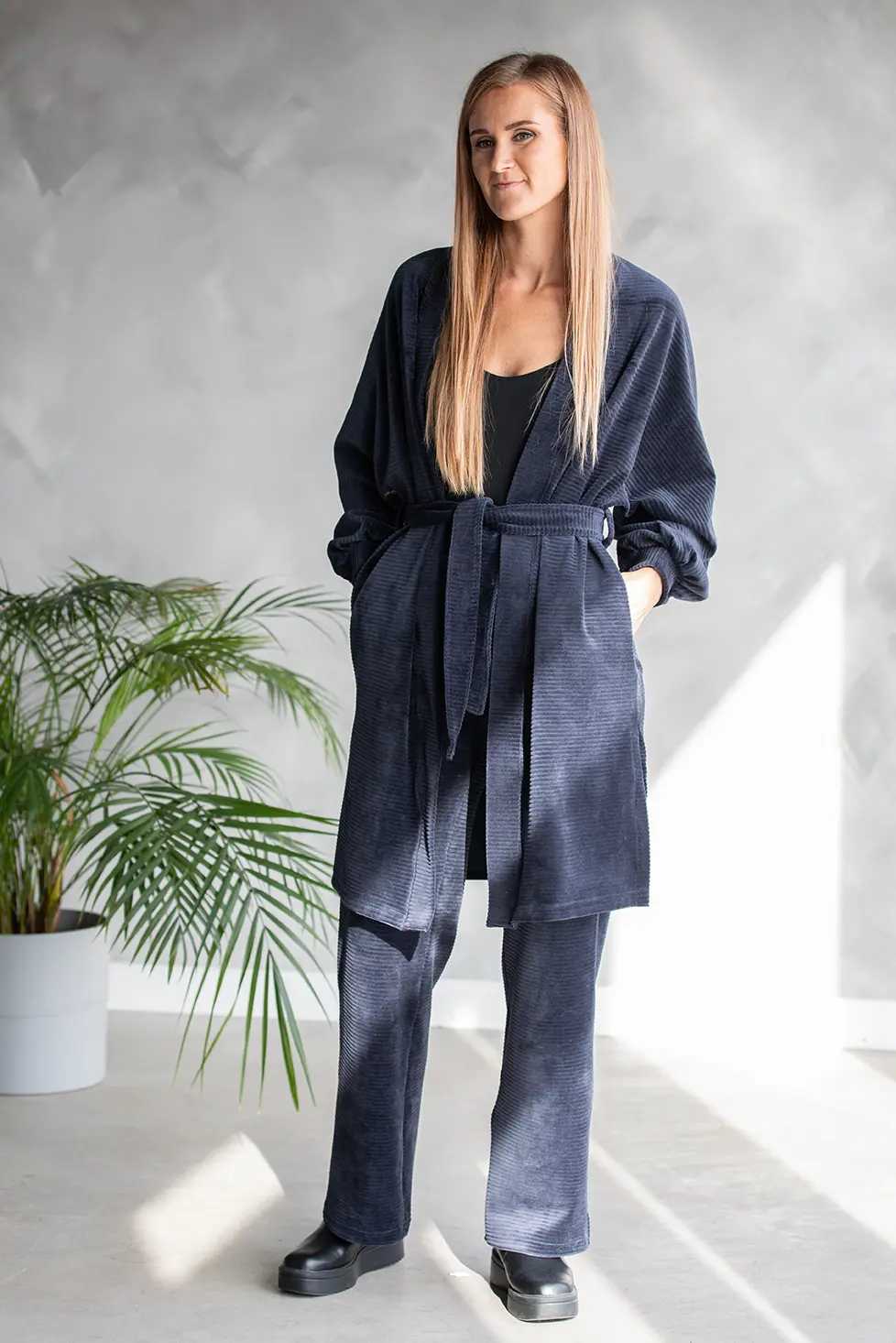 • Kimono küljeõmblustes taskud ja lõhikud