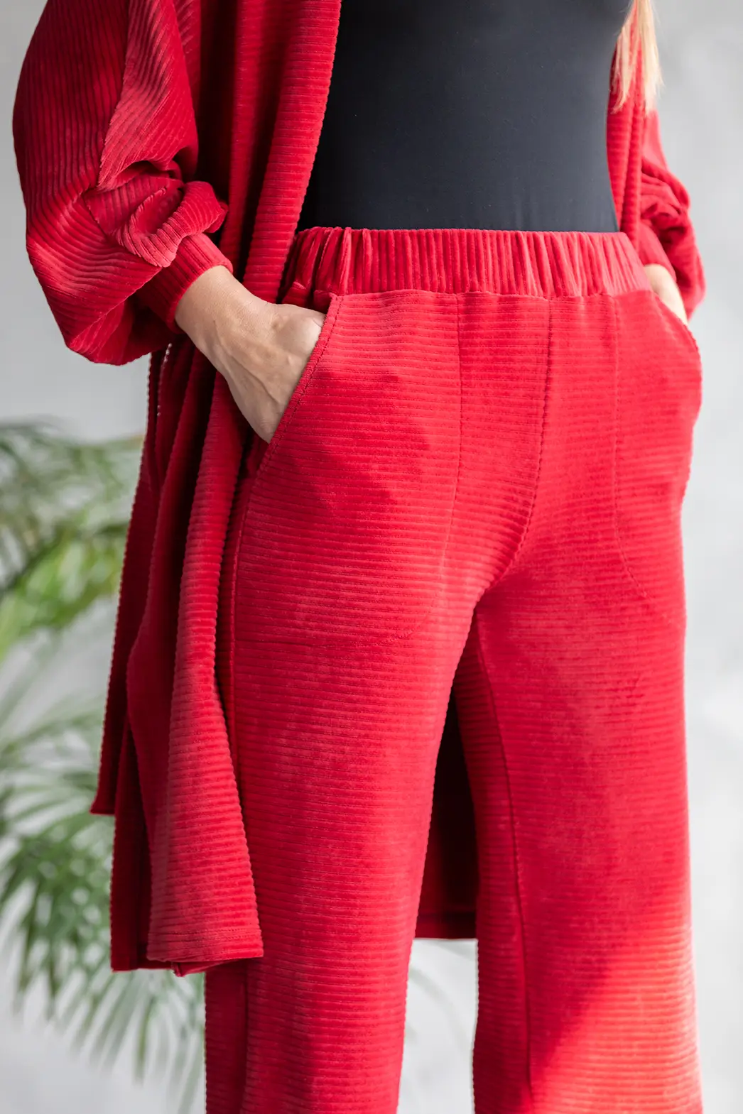 Laia säärega punased naiste vabaaja püksid, väga mugava ja avara lõikega.